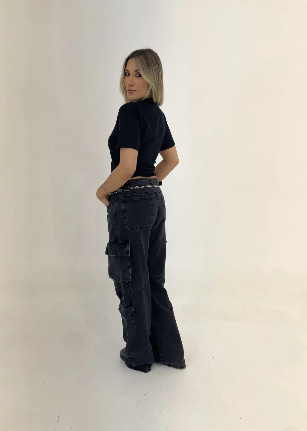 Blusa modelo babylook em modelagem ajustada ao corpo e comprimento na altura do umbigo. Confeccionada em tecido de malha 100% algodão na cor preto.