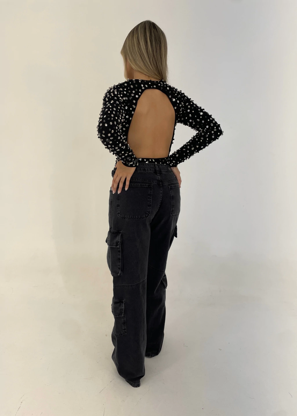 Body de manga longa com modelagem ajustada e decote profundo nas costas. Confeccionado em malha 92% viscose 8% elastano na cor preto. Toque super macio e confortável na pele.