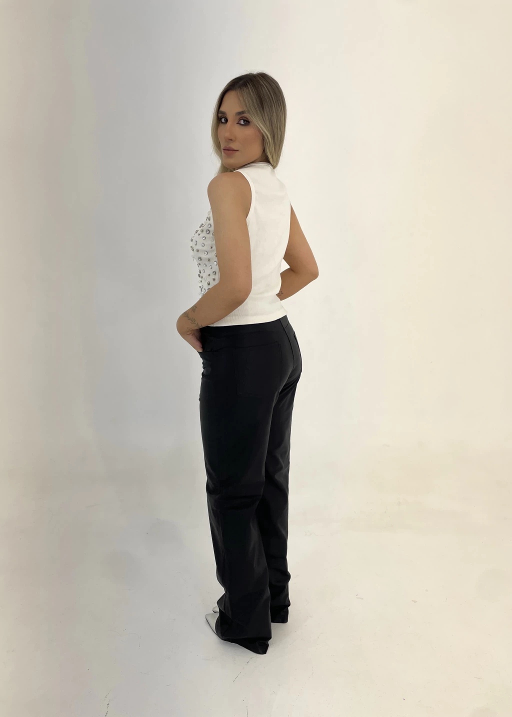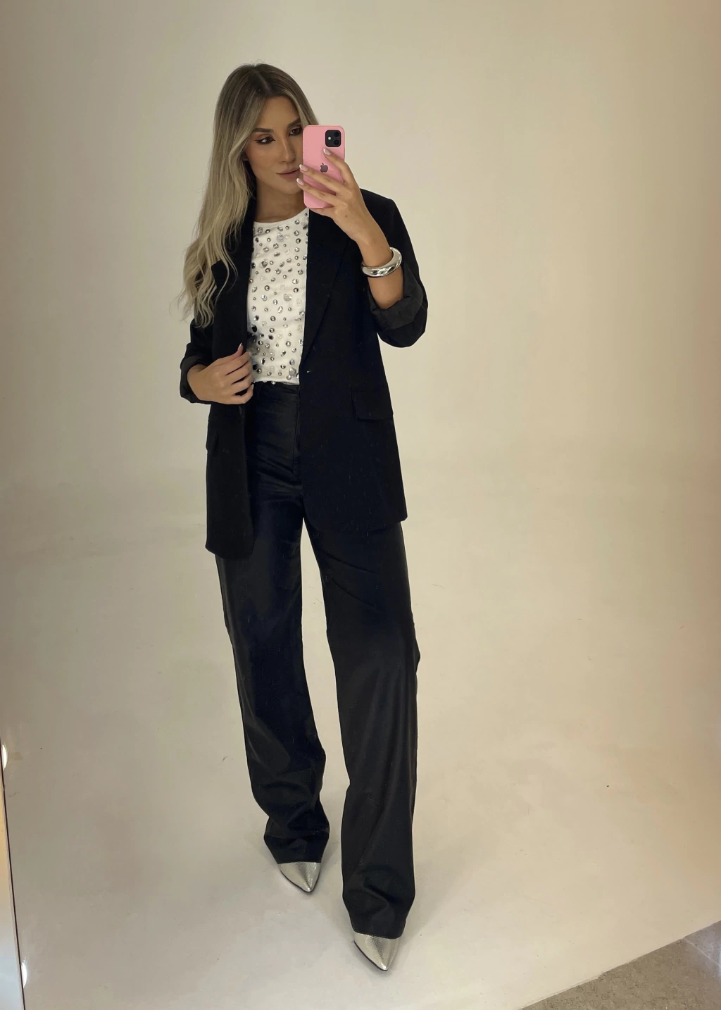 Peça bordada toda à mão (na parte da frente) com mix de pedrarias, cristais e paetês em prata.