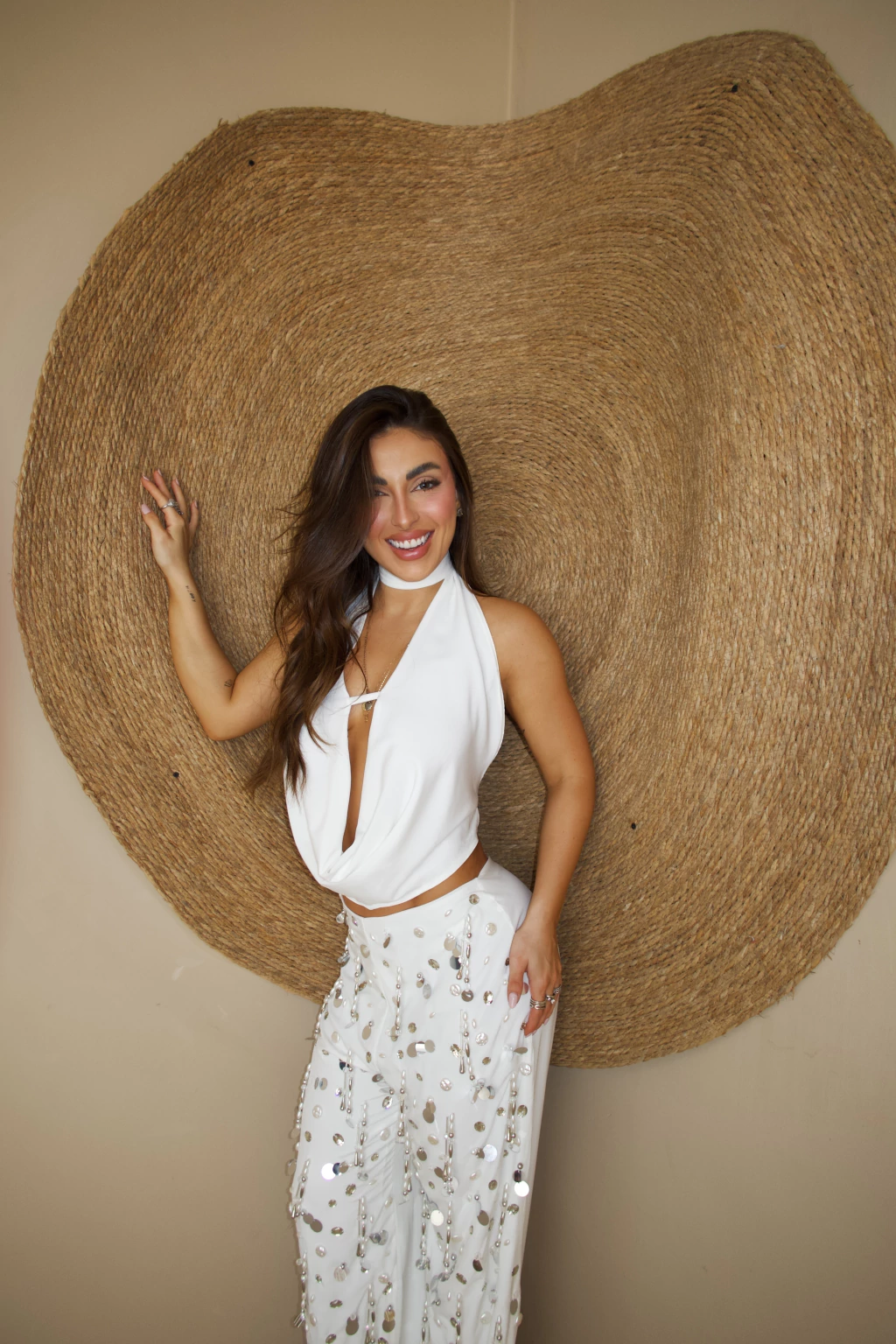 Top frente única com amarração 100% ajustável no pescoço e nas costas. Decote degagê com caimento fluido na parte da frente. Possibilidade de deixar o decote mais ou menos profundo de acordo com a amarração no corpo.